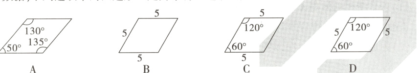 4. 根据所标 数据,下列选项中的四边形一定为平行四边形的是 ( )
