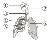 D. 外界空气进入⑥的顺序是①②③④⑤