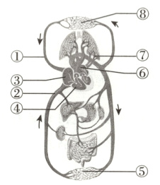 8. 某同学因为严重腹泻需要输液治疗,消炎药物和生理盐水通过血管输入他的体内。药物在体内经过的循环是( )