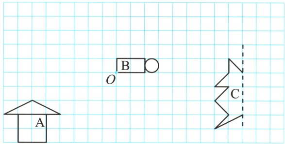 (3)根据对称轴画出图形C的另一半,使它成为一个轴对称图形。