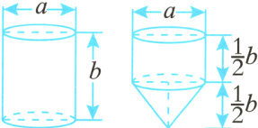 3. [丽水市莲都区]如右图,把一个体积为60cm³的圆柱形木料削成一个陀螺,陀螺的体积是圆柱形木料体积的( )。