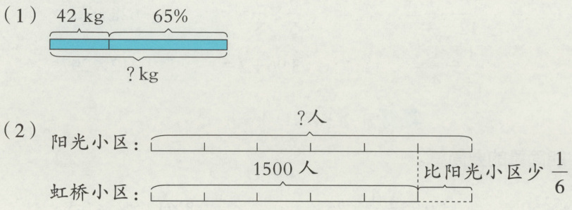 (1)$42\div(1 - 65\%) = 120$(kg)(2)$1500\div(1-\frac{1}{6}) = 1800$(人)
