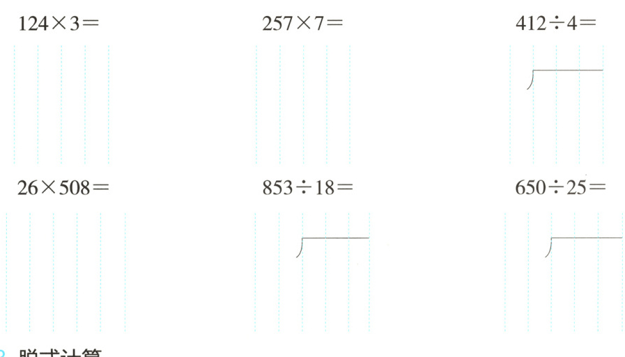 125×4= 480÷24= 149×20= 544÷16=