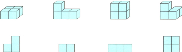 从上面看,是2个正方形。 从左面看,是2个正方形。 从正面看,是3个正方形。