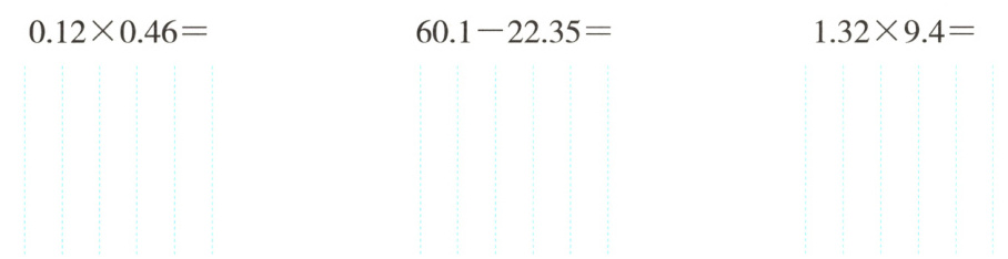 3.4+0.12= 0.03×2.3= 9.58−6.3= 1.04×0.2=