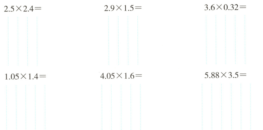 1.1×0.3= 2.2×0.2= 0.5×1.2= 7.1×0.4=