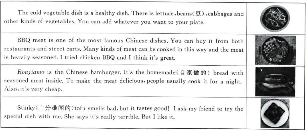 ( )39. What cannot you choose to add to your plate if you go to eat the cold vegetable dish?
