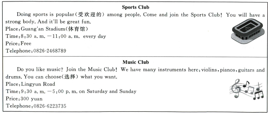 ( )42. How much will you pay if you want to join the Sports Club and the English Club?
