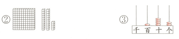 2. 第( )幅图表示的数是由1个百、2个十和4个一组成的。