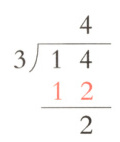 ,平均分给3个同学,每人分得几根,还剩几根?竖式中12表示的含义是( )。