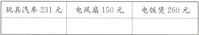 2. 给你500元,买哪两样东西,剩的钱最少?在你认为合适的答案下面画“√”。(3分)