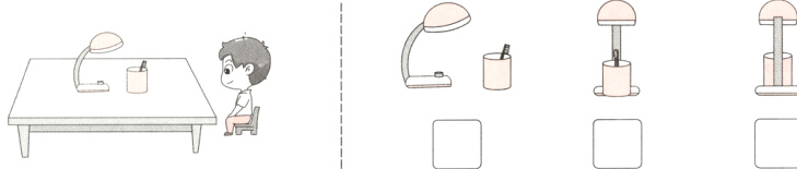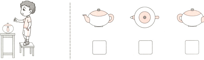 1. 下面右边哪个图形是小朋友看到的?在□里画“√”。(6分)