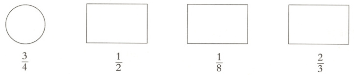 5.根据分数对下列图形进行划分并涂色。(4分)