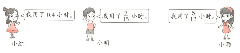 2.小红、小明和小雨走同一段路,谁的速度最快?(5分)