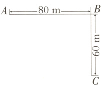 3. 迷你马拉松在某地举行,如图是赛道的一部分。赛道在B点拐弯,根据比赛要求需要在赛道的一边安排志愿者,每2名志愿者之间的距离必须相等,而且A、B、C三点处必须都安排一名志愿者,那么这段赛道至少要安排多少名志愿者?先算一算,并用“*”表示出志愿者的大致位置。(5分)