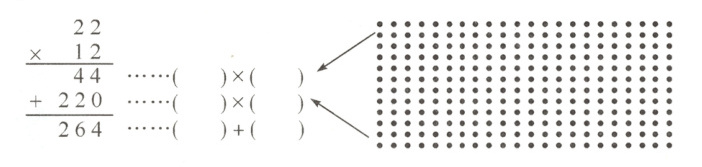 再用12十位上的( )乘( )得到( ),得数表示( )个十,即( )。得数的末位( )和乘数的( )位对齐。