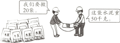 每袋水泥重50千克,20袋水泥重( )千克。20袋水泥的质量就是1吨,1吨=( )千克,吨可以记作( )。