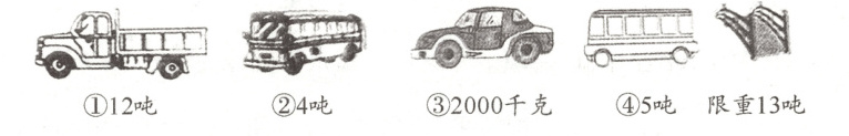 (1)这些汽车能同时上桥吗? (2)哪辆车只能单独上桥?