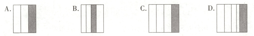 4.下图中,涂色部分是整个图形的$\frac{1}{4}$的是( )。