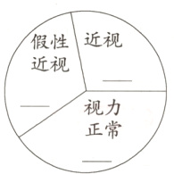 1. 如图是某小学六年级学生的视力情况统计图:视力正常的占40%,假性近视的占32%,近视的占28%。(5分)