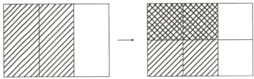 4. 分数乘分数的过程和结果可以用画长方形图表示,如图表示的分数乘法算式为( ),算式的意义是( )。