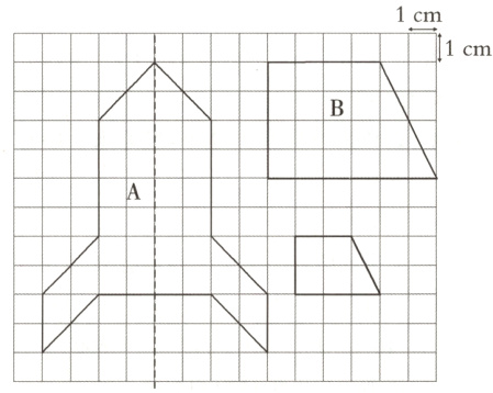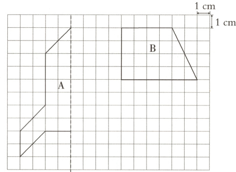 1. (1)补全图形A的另一半,使它成为一个轴对称图形。整个图形的面积是( )cm²(5分)。
