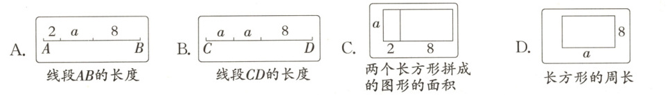 7. 新角度 数形结合 对2(a + 8)这个式子,四名同学分别画图表示自己的理解,正确的是( )。
