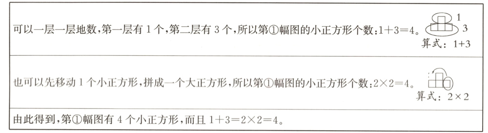 妙妙在解决问题时,首先研究了第①幅图有多少个小正方形,做了如下思考: