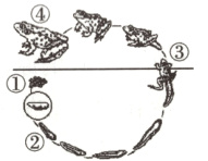 (1)蛙的发育经历了[①]__________,[②]__________,[③]幼蛙和[④]__________四个时期。