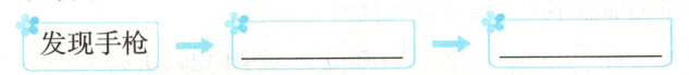 2. 选文围绕“手枪”安排了三个情节,请完成下面的情节图。(2分)
