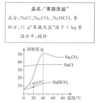 4.[2024·福州模拟]“果蔬洗盐”是一种果蔬清洁剂,其部分标签和主要成分的溶解度曲线如下所示。下列说法正确的是 ( )