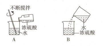 (1)图A和图B是两个同学稀释浓硫酸的操作,请你分析其中操作不正确的是________(填字母)。