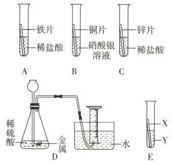 (3)丙同学认为上述实验方案不足以得出4种金属活动性顺序,需要在上述实验基础上补充实验E,其中X金属是________,Y溶液是________________。