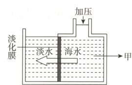 15.海水淡化的膜分离技术是在加压条件下,水分子可以透过淡化膜进入淡水池,而海水中的各种离子不能通过淡化膜。海水淡化过程中,关于如图甲处海水的说法正确的是( )