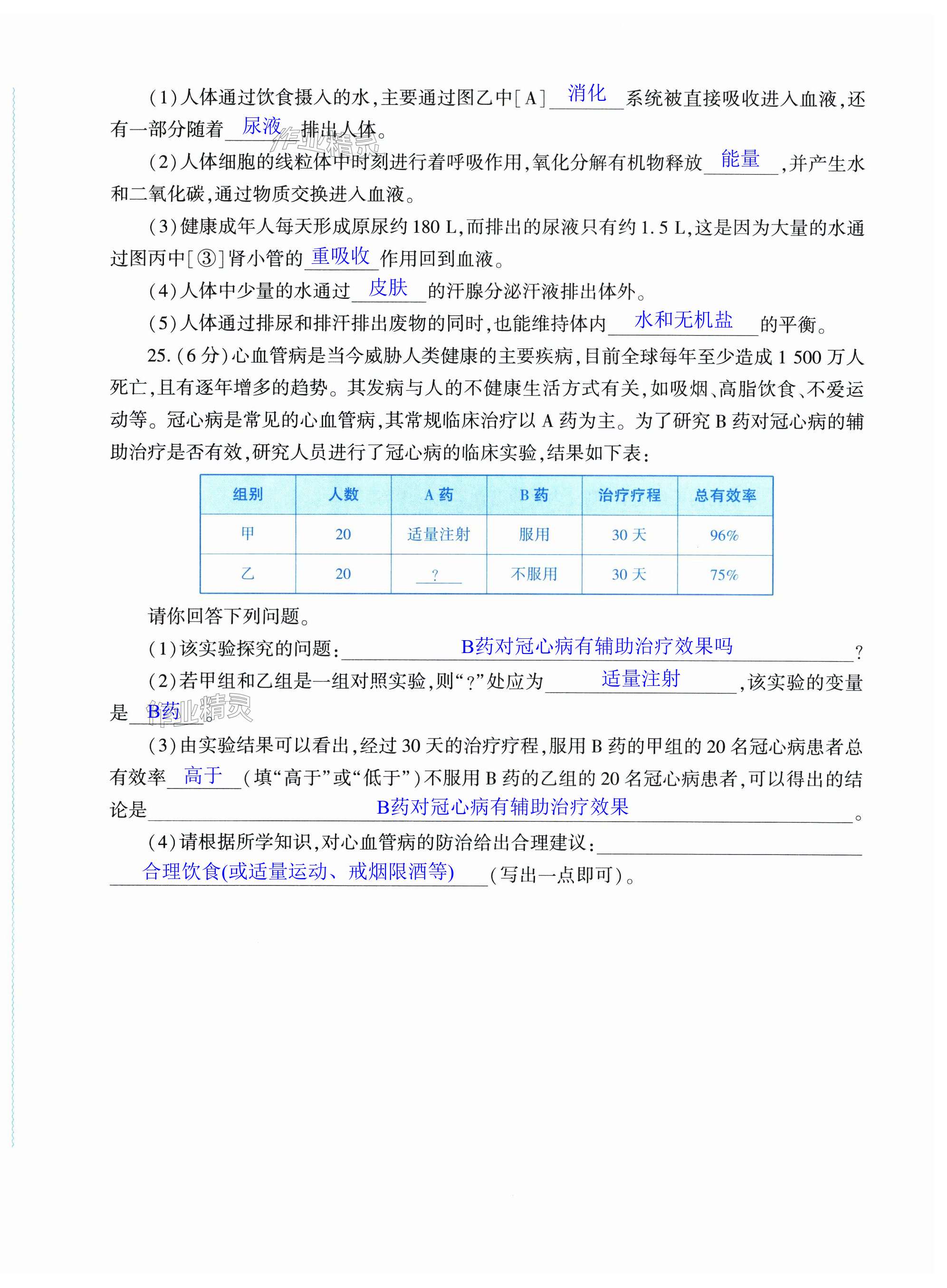注:目前有些书本章节名称可能整理的还不是很完善,但都是按照顺序排列的,请同学们按照顺序仔细查找。练习册 2025年基础训练大象出版社七年级生物下册北师大版 答案主要是用来给同学们做完题方便对答案用的,请勿直接抄袭。