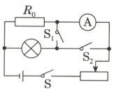 (1)闭合开关S和$S_2$,断开开关$S_1$,调节滑动变阻器滑片使小灯泡正常发光。