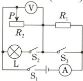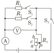 解:(1)只闭合开关$S_{1}$,$R_{1}$和$R_{3}$串联,电流表测量电路电流,电压表测量$R_{1}$两端的电压,移动滑动变阻器的滑片$P$,使电路中的电流最小,则滑动变阻器的滑片$P$位于$b$处,$R_{3}$接入电路的阻值最大,根据欧姆定律可得,$R_{1}=\frac{U_{1}}{I_{1}}=\frac{3\ V}{0.15\ A}=20\ \Omega$。