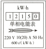 (20)A,其表述为:该电能表的标定电流为 10 A,额定最大电流(短时间内可以通过的最大电流)为 20 A。