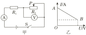 6.在如图甲所示电路中,电源电压保持不变。闭合开关S,将滑动变阻器的滑片P由最右端向左移动的过程中,电压表示数与电流表示数的变化关系如图乙所示。则定值电阻R₁的阻值为________Ω;电路的最小总功率为________W。
