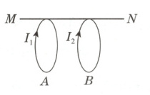 10. 通电线圈相当于一匝的通电螺线管,其两侧的磁极与线圈中电流方向的关系符合安培定则。把两个线圈A、B挂在水平光滑的固定绝缘细杆MN上,且平行靠近放置。当两线圈中通入方向如图所示、大小相同的电流时,线圈A、B将____(填“靠近”“远离”或“保持静止”)。