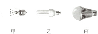11.(母题 教材P91图18.2 - 1改编)家庭照明使用的灯泡经过了三个阶段的发展,图甲是白炽灯,图乙是节能灯,图丙是LED灯。光通量是指光源在单位时间内所发出的光量,它是衡量灯的光亮度的重要指标,单位用LM。光效即发光效率,是指一个光源所发出的光通量与其电功率之比,可用“LM/W”表示(一般家庭使用的白炽灯“15 LM/W”、节能灯“50 LM/W”、LED“90~110 LM/W”)。某白炽灯与30 W节能灯发光亮度相同,该白炽灯的电功率是 ( )