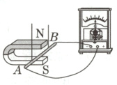 1. 探究磁生电的条件时,实验装置如图所示,在磁场中悬挂一根导体AB,把导体AB的两端跟电流表连接起来,组成闭合回路。