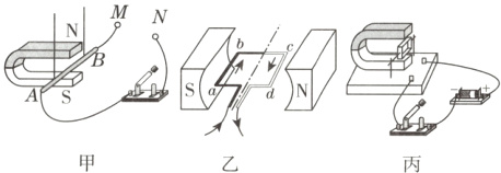 (1)应在M、N之间接入________(填“小量程电流表”“电源”或“灯泡”),装置中的导体棒AB应选用轻质的________(填“铁棒”或“铝棒”)。