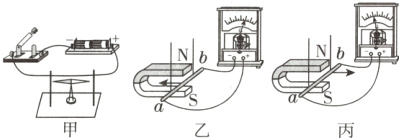 (2)小京用图乙所示的装置进行实验,其中灵敏电流计指针偏转的方向可以反映电路中的电流方向。使金属棒ab向左做切割磁感线运动,灵敏电流计指针向右偏转,如图乙所示;保持磁场方向不变,使金属棒ab向右做切割磁感线运动,灵敏电流计指针向左偏转,如图丙所示。小京探究的问题是________________________。