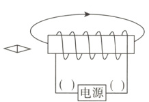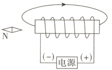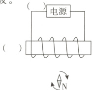 16.电磁铁通电,小磁针按图示方向转动,在括号内标出电源的“+”或“-”极、通电螺线管的“N”或“S”极。