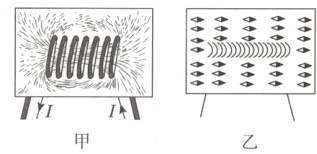 (2)小亮在螺线管周围的玻璃板上整齐、均匀地放置了32个小磁针,如图乙所示。给螺线管通电后,小亮观察到这32个小磁针的指向更接近于图中的______。