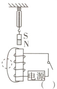 15.[2023·德州]如图所示,闭合开关后,弹簧测力计示数减小,请在括号中标出电源右端的极性并在虚线框内的磁感线上画出其方向。