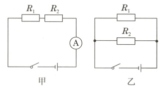 1.[2023·深圳]已知$R_{1}=2\ \Omega$,$R_{2}=3\ \Omega$,某同学分别按照图甲和图乙两种方式将电阻连接在一起(电源相同),则( )