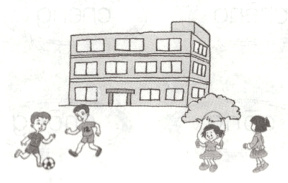 丁零零,下课了!小朋友们在操场上玩起了游戏。有的跳绳,有的踢球,还有的加油打气……玩了一会儿,他们坐在树荫下乘凉。小明说:“要不我们来玩一场足球赛吧!”“好呀!”于是,小明和可乐就开始比赛了。他们的水平不相上下,旁边的女生也跟着加油,好开心呀!