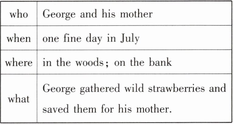 (6)Seeing the wild strawberries, George's mother was really glad, tears running down her face.